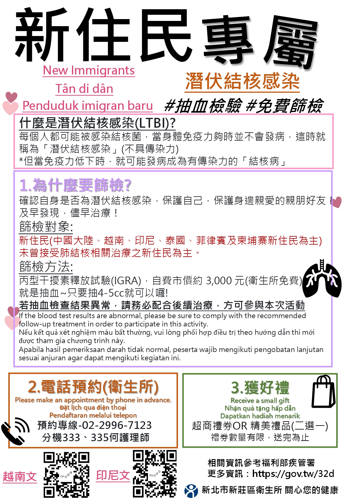 新住民專屬免費抽血:潛伏結核檢查