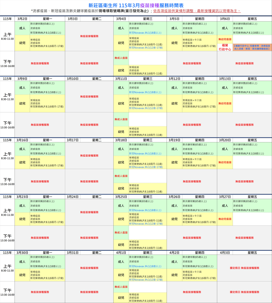 | 新莊區衛生所 115年3月疫苗接種服務時間表.jpg |