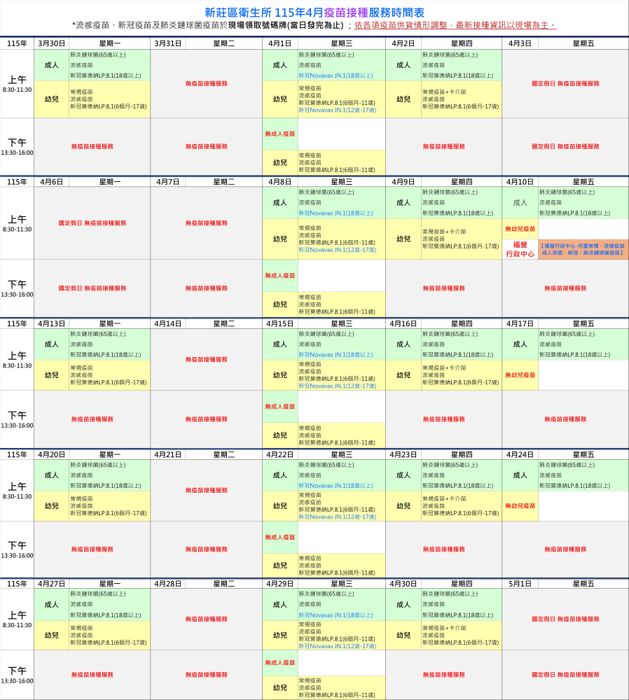 | 新莊區衛生所 115年4月疫苗接種服務時間表.jpg |